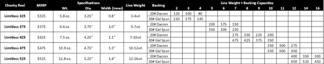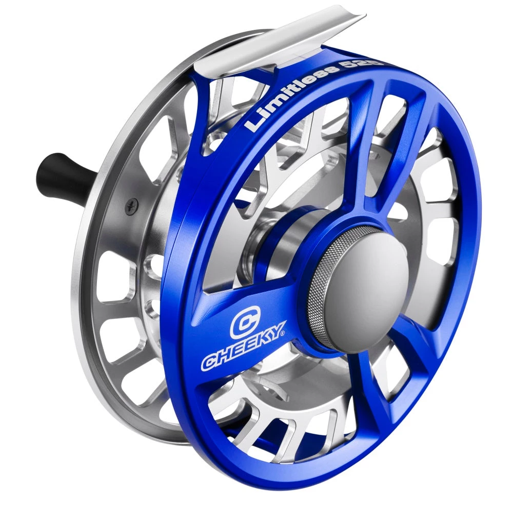 Limitless Fly Reels have set a new standard for performance, toughness and Cheeky’s signature appeal. All Limitless Reels feature an innovative fully sealed drag system. Cheeky’s GDS (Gasket Drag System) is fully sealed and impenetrable by the elements, so you can dunk away without worrying about salt, sand or debris interfering with an amazingly powerful and smooth drag. Limitless Reels are fully machined from high-grade aerospace aluminum, and incorporate a multi-axis machining technique that redistributes metal to key stress points, making Limitless Reels stronger without adding unnecessary weight. An integrated, yet replaceable, reel foot disperses torque throughout the frame during the toughest fights, providing the advantages of a one-piece reel foot without the disadvantage of having to replace your entire reel if dropped on the foot. Limitless Reels offer unbeatable line capacity, easy L/R conversion, an insane arbor size for maximum retrieval rate, and remain some of the lightest and strongest fly reels available. The Limitless series is available in 5 sizes from 2wt to 16wt and in a mix of choice colors.