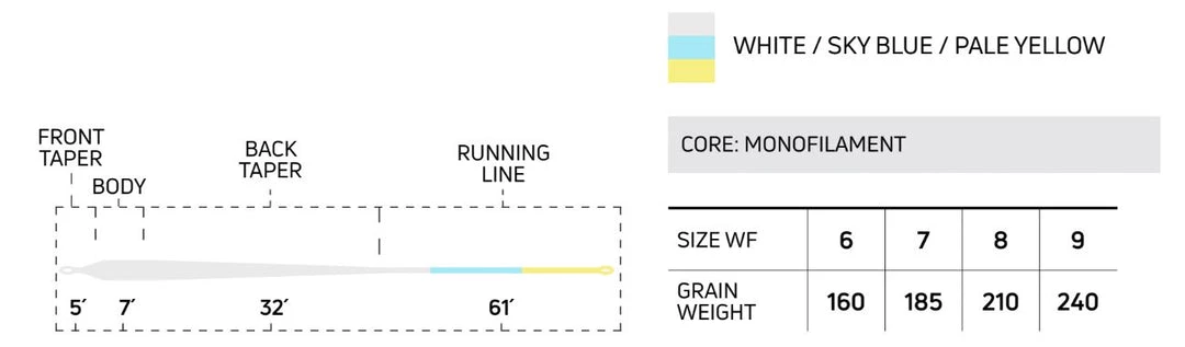 The Bonefish line features an aggressive taper that loads rods easily for close shots. Elongated rear taper provides excellent loop control when you need to carry line for long range targets.