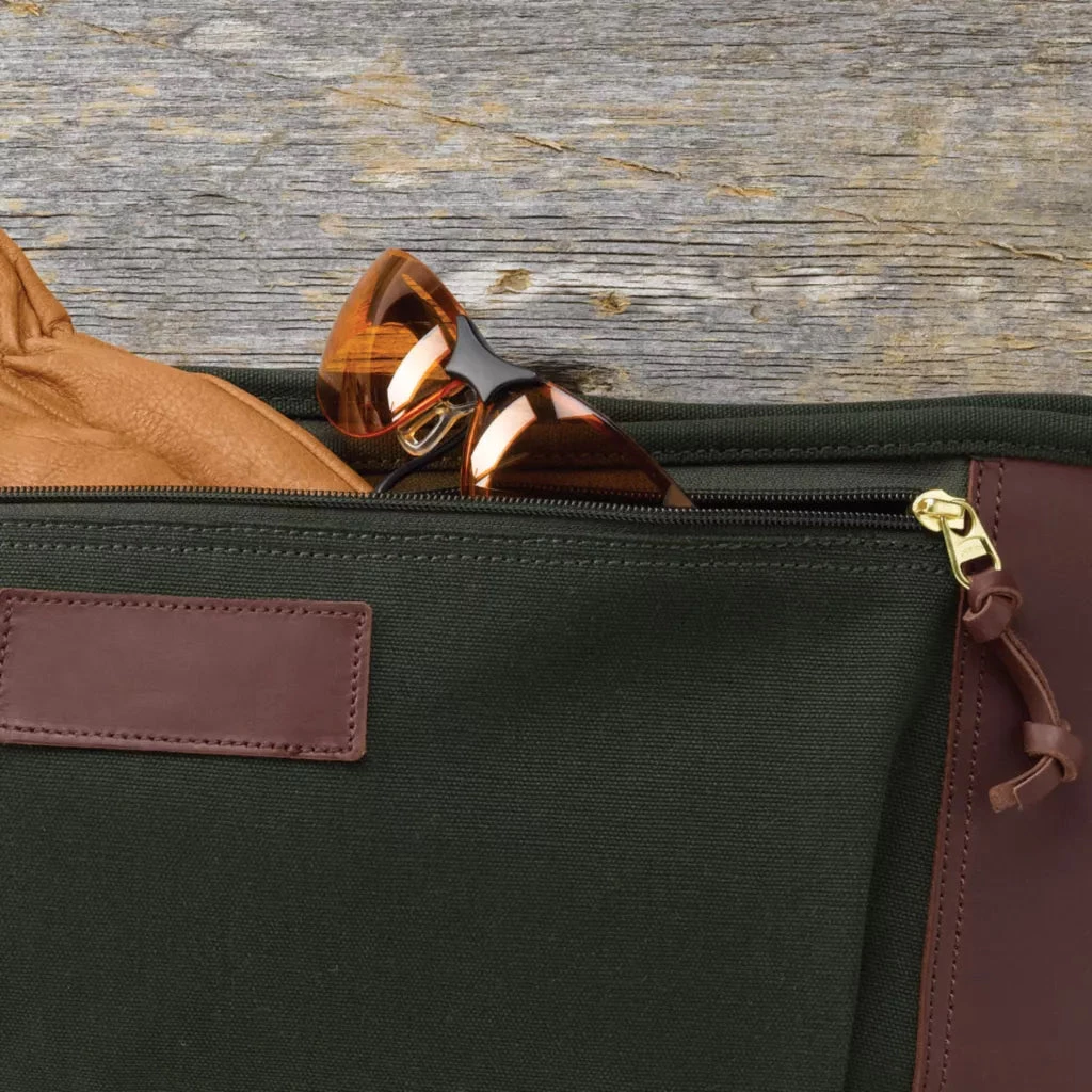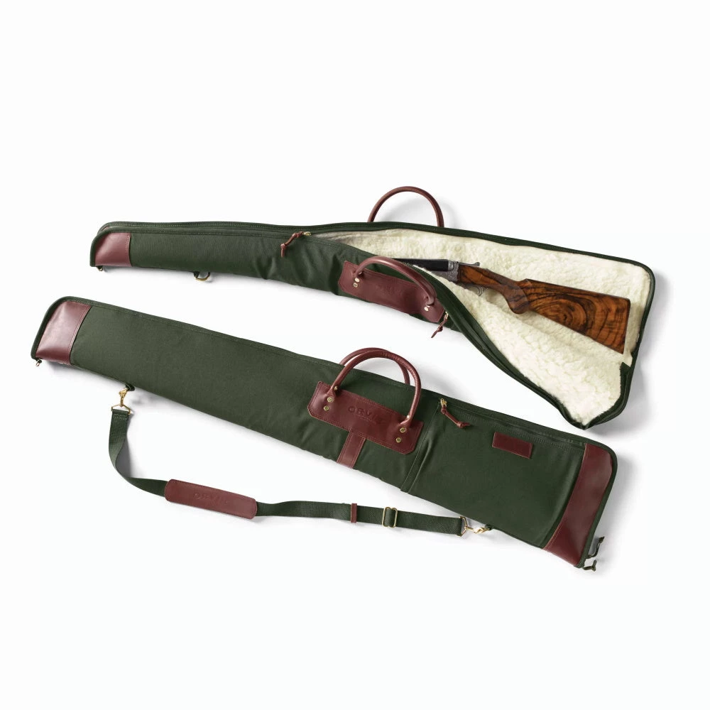 This popular shotgun case is crafted of rugged Battenkill canvas with leather accents. It cradles your beloved shotgun for protection while on the road or at home. A plush lining keeps your shotgun securely nestled. An 8″x12″ storage pocket provides ample room for accessories you need at the range or on the hunt. Rolled handles and shoulder strap included. Case unzips and butterflies for quick drying. Detailed with brass-finished hardware. Spot clean. Imported. Choose either a 48″ or 52″ length.