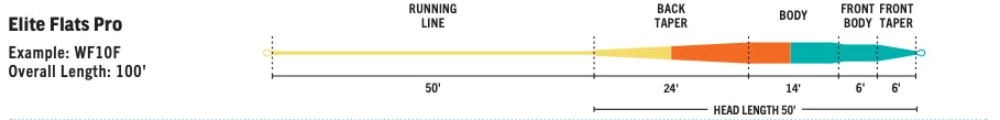 Conquer the flats with RIO’s Elite Flats Pro tropical saltwater line. This line has a mid length head and long back taper for smooth, effortless loops, and a weight distribution that provides perfect presentations of just about any fly you are likely to use. Each line is built on RIO’s low-memory DirectCore that is extremely easy to anneal (stretch) and lies perfectly straight on the water, yet retains the stiffness needed to cast in hot conditions. In addition the line is built with SlickCast—the slickest, most durable coating on the market.