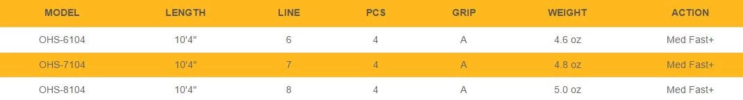 | Rod | 6wt 10'4" 4pc, 7wt 10'4" 4pc, 8wt 10'4" 4pc |