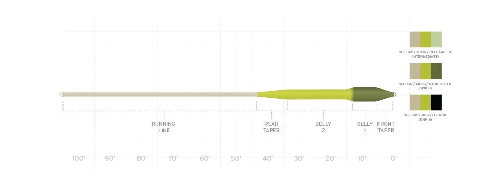 - Available in three Sink Tip densities: Float/Int. = 1.25 ips; Float/Sink 3: 2.5 – 3.5ips; Float/Sink 6: 5.5 – 6.5ips